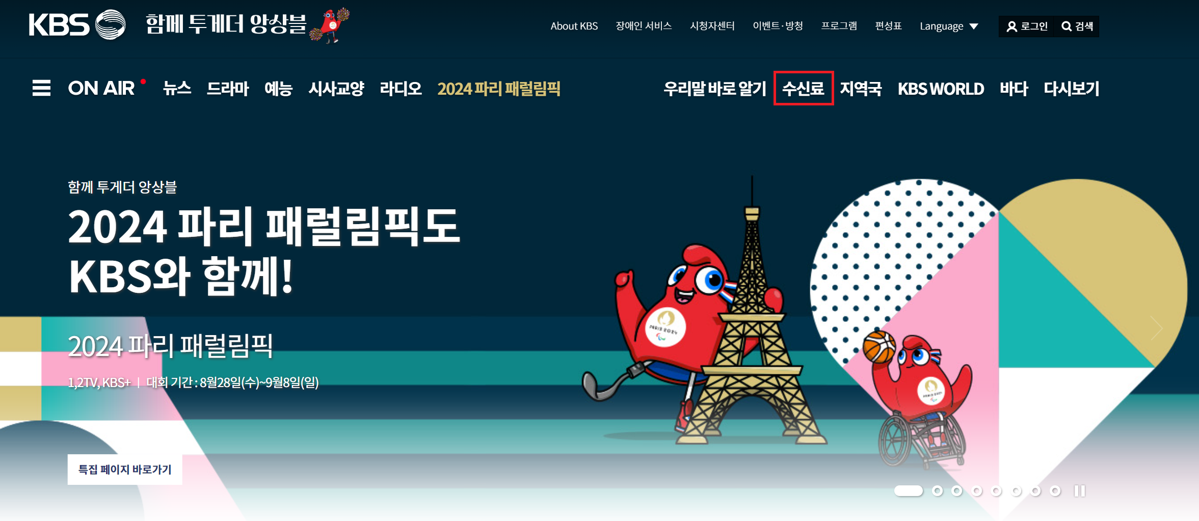 ② 우측 상단의 '수신료' 클릭